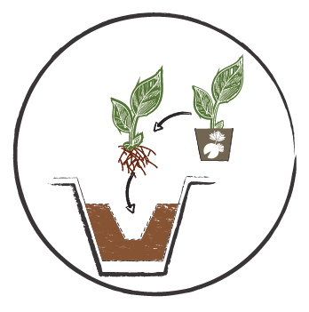 Sortir la plante de son emballage et la poser dans le pot. Ne pas couper les racines