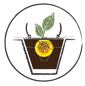 Remplir le pot panier de substrat au 3/4 de la hauteur en créant un trou dans le centre pour accueillir votre plante aquatique.